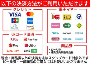 現金・商品券以外の決済方法はスタンプカード対象外となります。